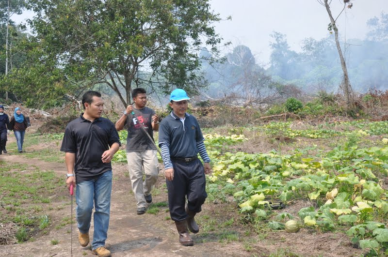 Di tengah-tengah kawasan yang terbakar. Unit penguatkuasaan bersama dengan D.O (berdiri bertopi biru)